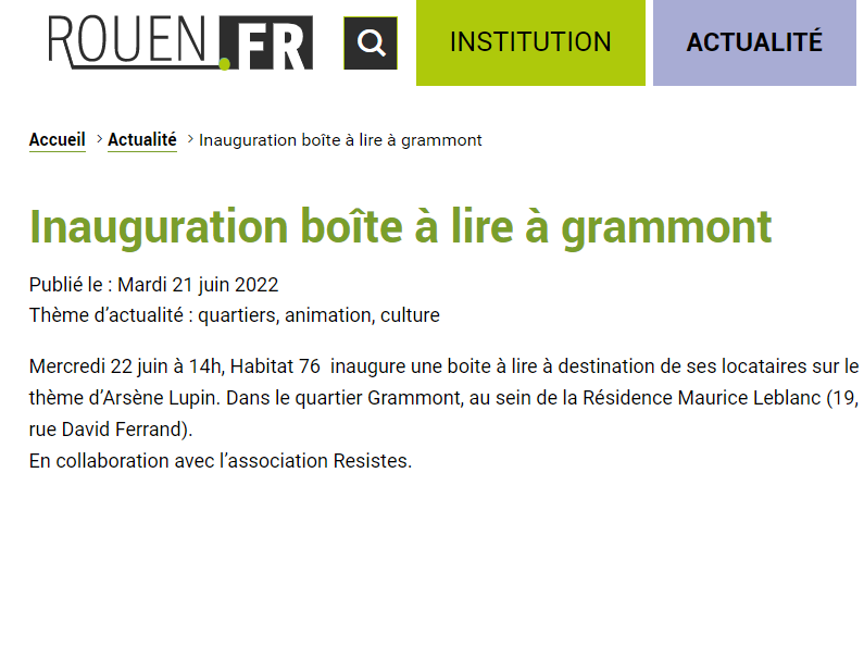 Création d’une boite à livres sur le thème d’Arsène Lupin, en partenariat avec l’association RESIST